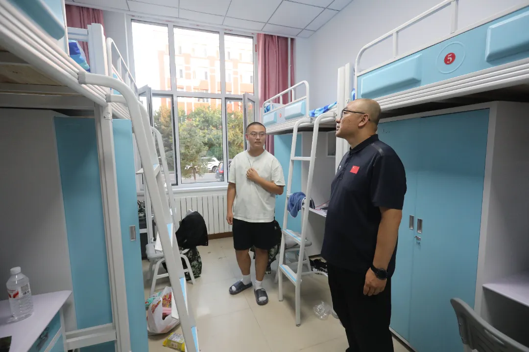 为进一步掌握大学新生入学适应情况与思想动态,帮助新生提前做好军训准备,确保军训期间安全、顺利完成训练任务,9月1日晚,qy球友会党委书记乌日其木格、副院长柳林与辅导员一行,深入西区15号、16号和19号宿舍楼走访慰问2025级新生。