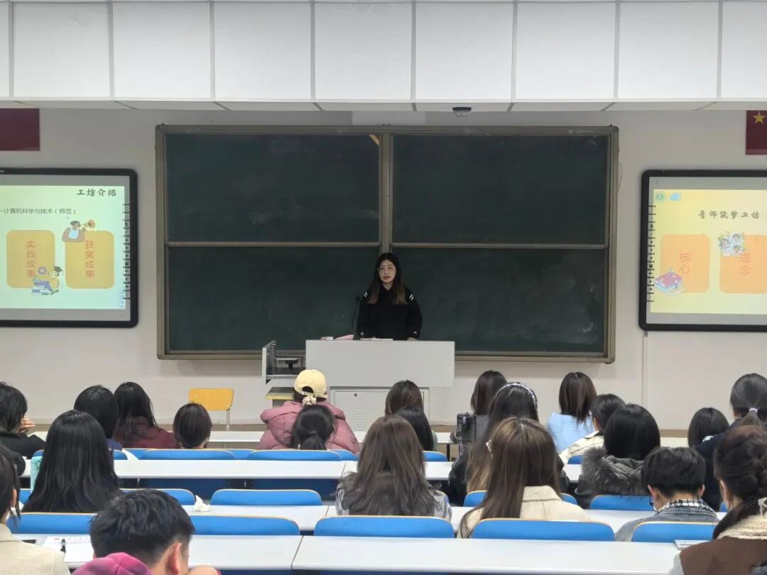 最后,孙涵同学从 “工坊发展” 与 “个人成长” 双维度展开分享。她介绍,青师筑梦工坊设有规范的成员筛选机制,成员需通过考核方可成为正式一员,明确了加入青师筑梦工坊的标准与路径。随后,她结合自身参赛经历与实践经验,鼓励在场同学积极参与各类竞赛,在实战中提升创新教学能力和综合实践能力,为个人专业发展积蓄力量。
