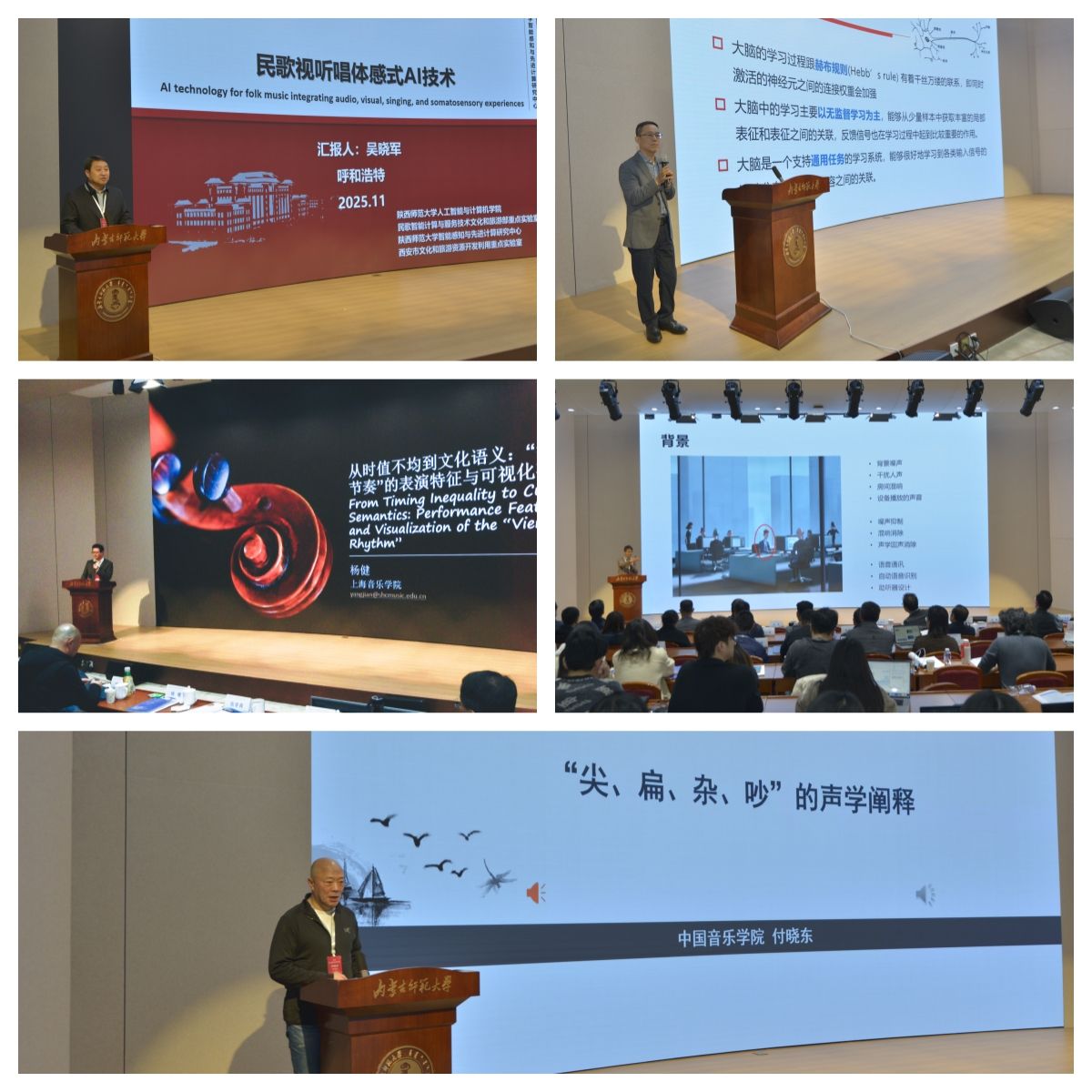 主旨报告揭示未来方向:五场大会主旨报告构成了会议的理论高地。中国音乐qy球友会付晓东教授对民族管弦乐队“尖、扁、杂、吵”音响特征的声学阐释,为传统音乐美学提供了量化支撑;陕西师范大学吴晓军教授展示了融合多模态AI的民歌体感式视听唱系统,开辟了文化遗产活态传承的新路径;上海音乐qy球友会杨健教授通过“维也纳节奏”的可视化研究,揭示了音乐表演与文化语义的深层关联;复旦大学张文强研究员阐述了音视频信息在具身智能学习发育中的关键作用;内蒙古大学张学良教授则深入剖析了知识与数据驱动在语音信号处理中的融合优势。