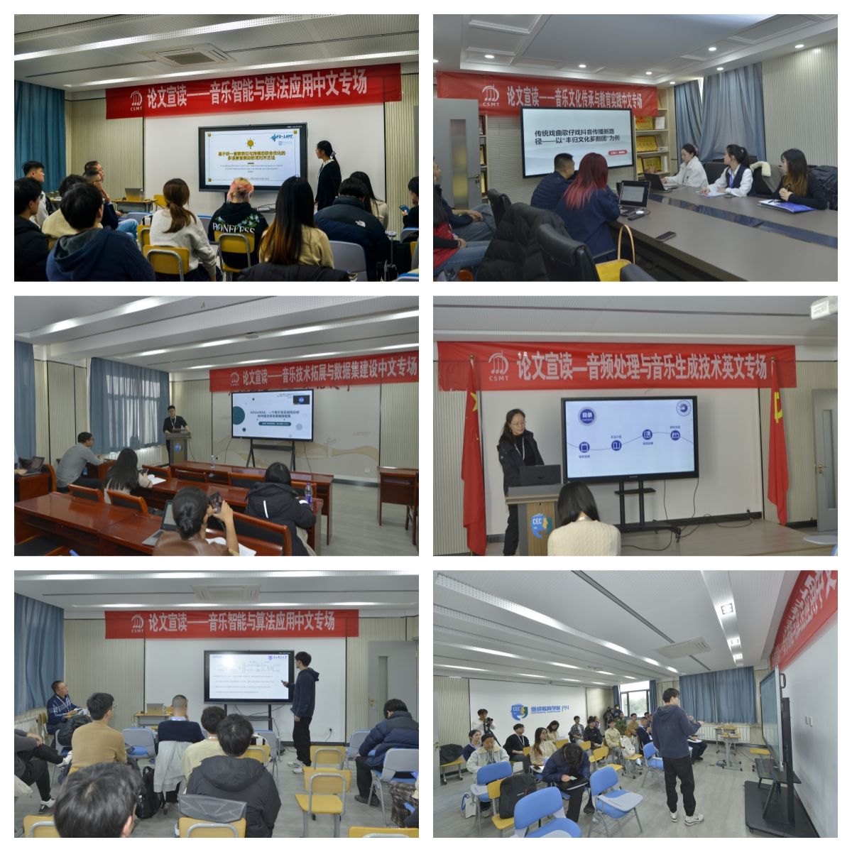 论文宣讲展示创新前沿:会议设置的多个平行分会场是研究成果集中展示的舞台。研讨主题广泛覆盖“音乐文化传承与教育实践”“音乐技术拓展与数据集建设”“音频处理与音乐生成技术”“声学与声源定位技术”以及“音乐技术与文化融合研究”等方向。报告论文质量高、创新性强,现场讨论热烈。