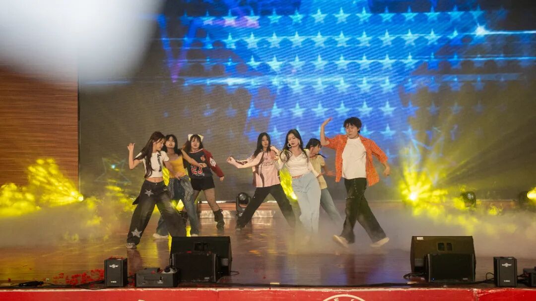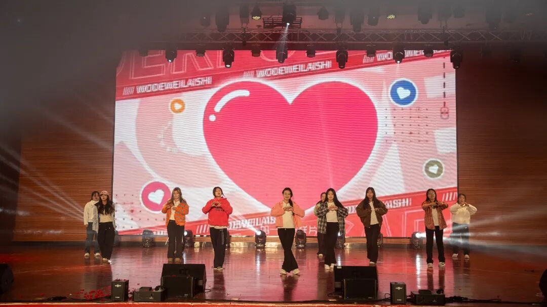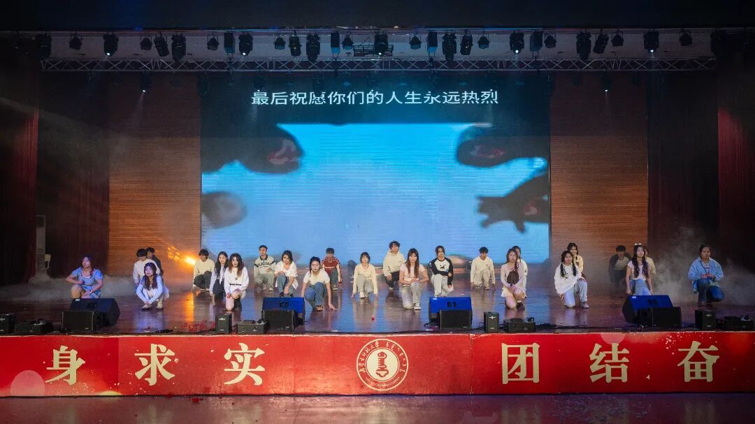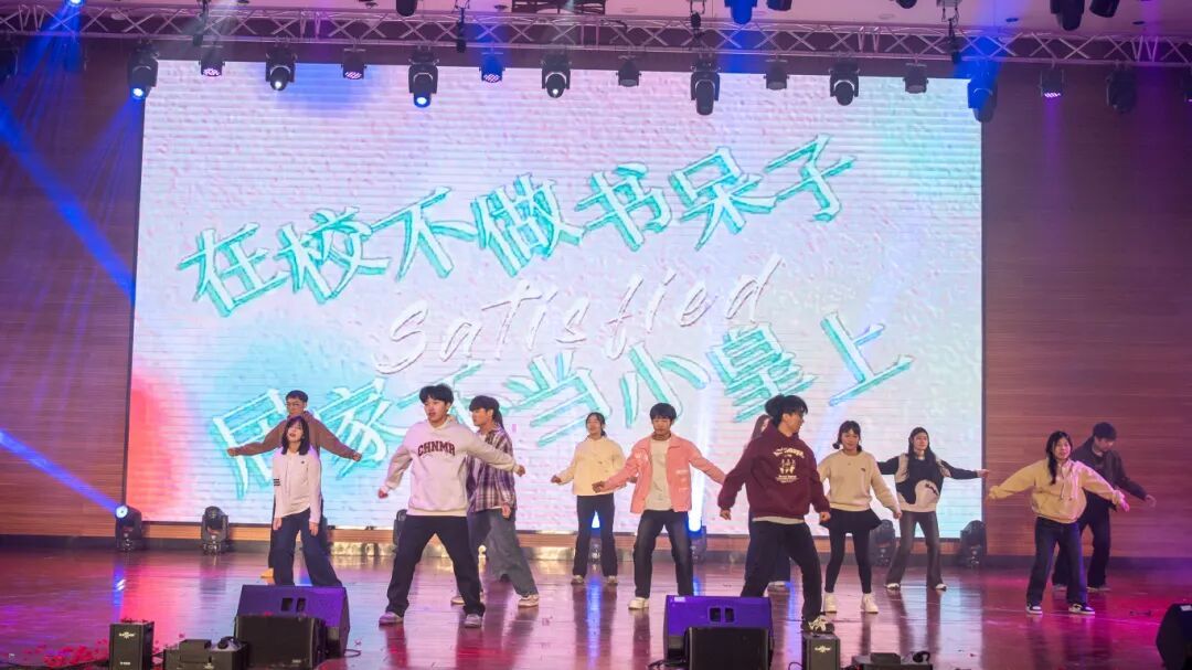 晚会在一场创意独特的幕布剧中拉开序幕,光影交织的视觉语言生动诠释了青春的理想与追寻,迅速点燃了全场氛围。整场演出节目类型丰富、表现形式多元,涵盖舞蹈、歌唱、语言类及乐队表演等多种艺术形式。活力四射的舞蹈串烧以整齐的编排和动感节奏引爆现场;歌舞表演将经典曲目重新演绎,展现青春洋溢的时代气息;深情对唱情感细腻,和声优美动人,营造出温馨而富有感染力的舞台氛围;幽默诙谐的小品围绕校园生活展开,贴近现实的情节设计引发阵阵笑声与共鸣;主题话剧聚焦青年成长议题,剧情层层推进,表演真挚深刻,引人思考;最后,激情四射的乐队表演将现场气氛推向高潮,电声乐器与饱满人声交织,展现出同学们出色的舞台表现力和音乐创造力。
