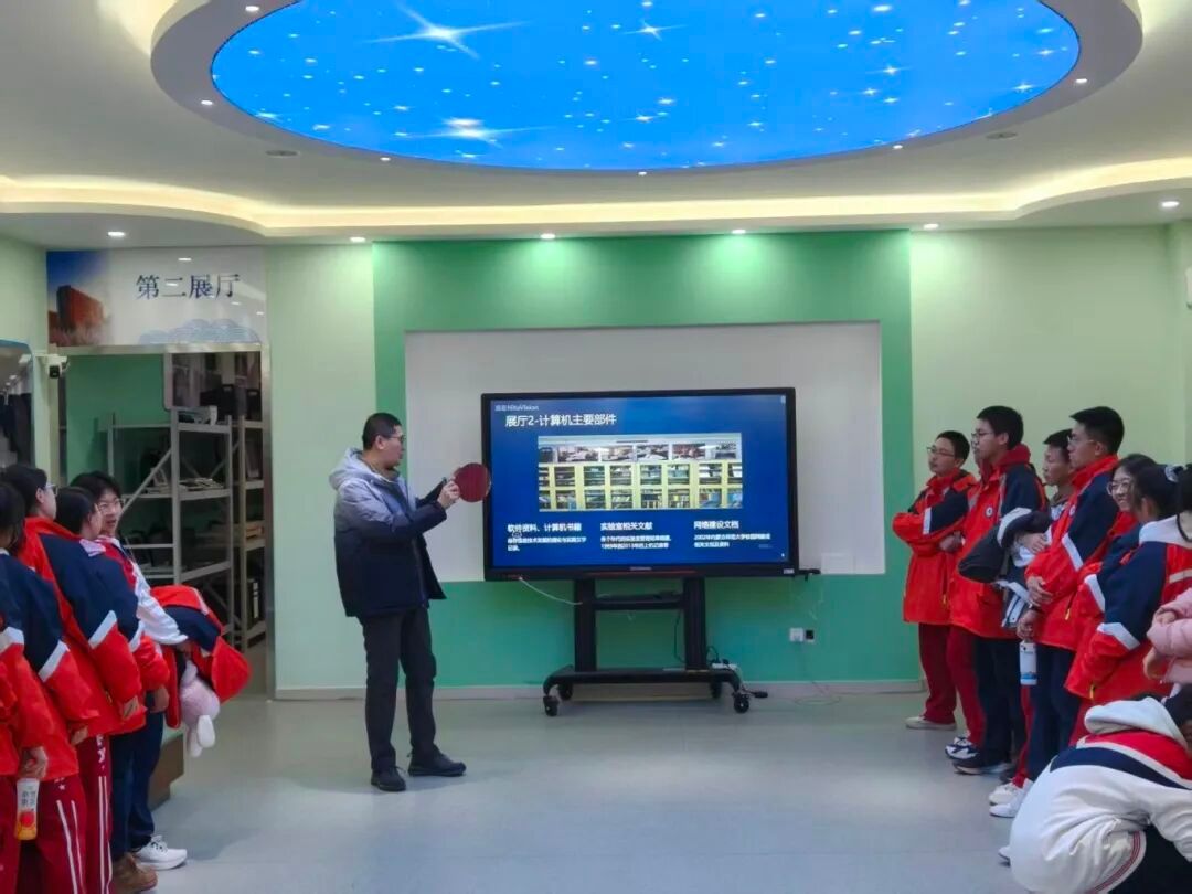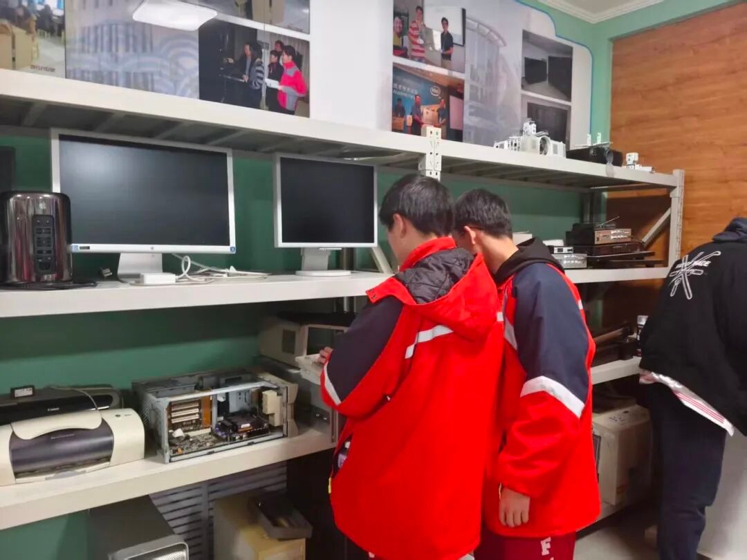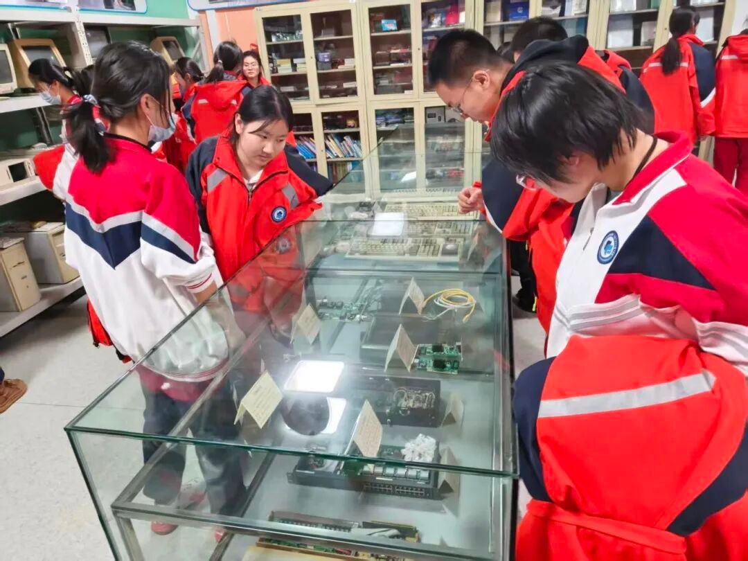 活动中,同学们分别参观了qy球友会信息技术史馆与机器人与人工智能创新中心。信息技术史馆内陈列涵盖网络通信设备、超级微型机、高性能计算集群、服务器、老式个人计算机、笔记本和工作站、计算机主要配件,全面展现了信息技术从萌芽到蓬勃发展的历程。实验中心员工生动详实的解说,使同学们对信息技术波澜壮阔的发展史有了直观而深刻的认识,在亲身感受各阶段实物展品的过程中,进一步激发了创新热情与探索欲望。