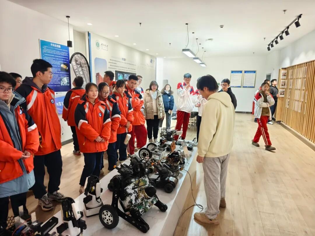 在机器人与人工智能创新中心,师生们近距离考察了qy球友会重点建设的双创孵化平台。中心集中展示了qy球友会在多项国家级机器人赛事中获奖的自主研发成果,包括视觉机器人、轮腿机器人、平衡车、自适应机械臂等智能系统。现场演示了机器人在自主导航、动态抓取等方面的先进功能,研发团队鼓励高中生积极参与全国青少年机器人竞赛等相关赛事,在实践中锻炼创新能力。