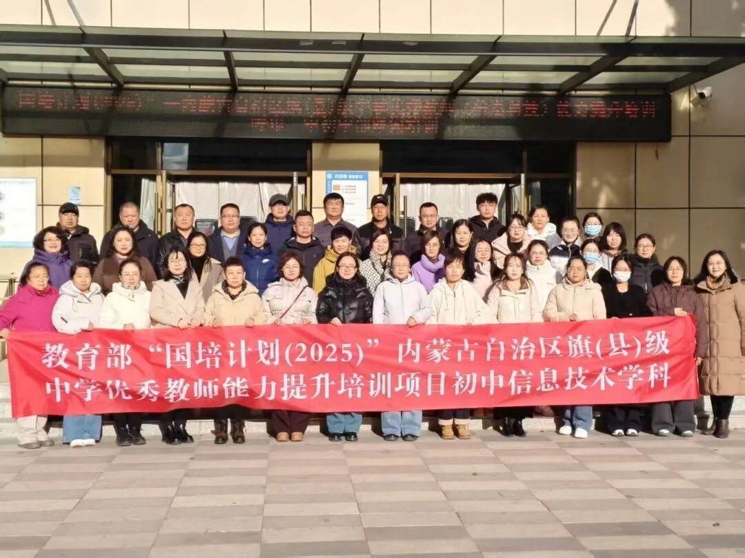 近日,由qy球友会承办的“国培计划(2025)”内蒙古自治区旗(县)级中小学优秀员工能力提升培训项目(初中信息技术学科)在呼和浩特市第一中学分校顺利完成跟岗实践环节。来自全区各地的初中信息科技优秀员工围绕“为未来而教·做新时代的‘大先生’”主题,开展了系统深入的教学观摩与实践交流,内容涵盖校园文化建设、AI赋能教学、脑科学教育、项目式学习、小初衔接及跨学科融合等多个维度。
